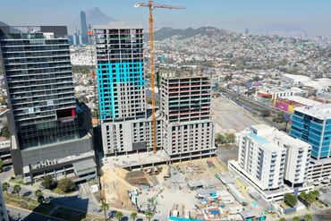 Descripción: Desarrollamos consultoría de fachadas para presiones de ciento en fachadas. Este imponente proyecto de dos torres que se unen por la zona de amenidades, presentaba un efecto de presión de viento y succión justo en esta zona, lo que hacía casi imposible la estancia de personas o mobiliario. Fuimos contratados para realizar revisión estructural y en consecuencia diseñar una barrera para mitigar la presión de viento, haciendo este espacio funcional y habitable. La solución, una pantalla de vidrio laminado, completamente transparente para no restar la vista al cerro de la silla. En proceso