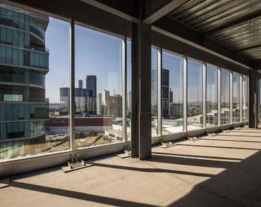 Descripción: Desarrollamos proyecto ejecutivo para envolvente de fachada en sistema unitizado, con la peculiaridad de una trama aleatoria con perfiles de aluminio que sobresalen al exterior en diversas modulaciones. Todo con vidrio de alta eficiencia energética de producción nacional al igual que el aluminio y el hardware de sujeción. El diseño incluye planos de logística de pre ensamble, armado a distancia, y logística de montaje. Todo fue prefabricado en un sitio distante de obra, transportado y montado posteriormente.