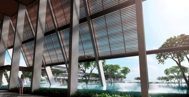 Descripción: Ingeniería de fachada para este proyecto ubicado en el Caribe Mexicano con alta incidencia de huracanes. La solución de fachada incluye una celosía de madera sintética WPC (Wood Plastic Composite) con refuerzo interno de acero en cada celosía. Esta fachada, además de ser resistente a huracanes de categoría 5, también ayuda a reducir la incidencia de la luz solar en el interior del edificio.